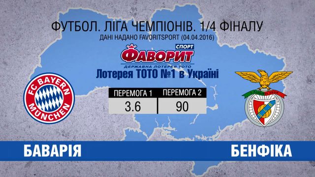 Сьогодні стартує чвертьфінальна стадія Ліги чемпіонів. З-поміж інших у дуелі зійдуться мюнхенська "Баварія" та лісабонська "Бенфіка". Фахівці не сумніваються в успіху "Баварії". Коефіцієнт на перемогу підопічних Гвардіоли — 1,17. Тоді як перемогу "Бенфіки" у матчі розцінять не інакше як диво — коефіцієнт 18. "Баварію" називають одним із головних претендентів на перемогу в турнірі. Шанси на успіх мюнхенців втілилися у 3,6.Коефіцієнт на те, що Лігу виграє "Бенфіка" просто захмарний — 90. Водночас несподіванок у головному клубному турнірі Старого Світу ніколи не бракувало. Тож загадувати наперед не варто. Португальці спробують замахнутися на сенсацію вже сьогодні. Початок зустрічі о 21:45. +Відео