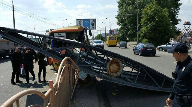 У Луцьку внаслідок зіткнення маршрутки з рекламним щитом постраждали близько 10 пасажирів та водій. Аварія сталась вдень 21 травня, повідомляє патрульна поліція Луцька. Після зіткнення рекламний щит упав. Маршрутка найбільше потрощена з того боку, де розташоване місце водія. Водія з травмами різного ступеня важкості доставили до лікарні, серед постраждалих — ще 10 пасажирів. Що стало причиною аварії — з'ясовують правоохоронці. Патрульні просять також про допомогу свідків аварії, які бачили момент зіткнення.2 3