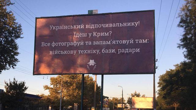 Відпочивальника запропонували "попрацювати" на користь України. Як написав блогер Антон Ходза, який розмістив це фото, до реалізації проекту долучилося чимало волонтерів та херсонська влада. Думаю, на цьому зупинятись не будемо, ідей ще багато, – написав Антон Ходза. Борди з написом "Український відпочивальнику! Їдеш в Крим? Все фотографуй та запам'ятовуй там: військову техніку, бази, радари" висять на виїздах з Херсона у напрямку Криму, на вокзалі та по місту.2 3