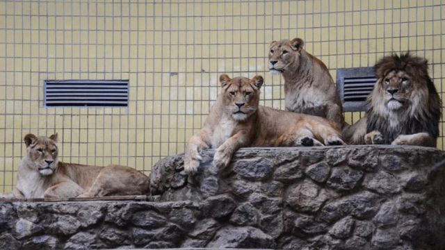 У київському зоопарку леви відзначили свій День народження. До столиці їх ще зовсім маленькими кошенятами вісім років тому привезли з Калінінграда. У прайді київського зоопарку чотири лева. Найвгодованішою виглядає кішка Христина. Попри звичні закони природи головою прайду стала вона, а не лев. Натомість зараз "цар звірів" і сам почав проявляти характер і претендувати на головуючу роль. До Дня народження, щоб створити хижакам святковий настрій, працівники звіринця підготували справжні рольові ігри. На спеціальній платформі, яка розхитується, закріпили корм. Щоб дістати свій шмат м'яса, леви мали добре балансувати. Проте, святковий раціон левів нічим не відрізняється від буденного. Кожен отримує по п'ять кілограмів яловичини. Та, щоб ускладнити завдання, працівники підготували псевдоприманки із послідом копитних. Цей запах мав збити хижаків з пантелику. Коли конструкцію тестували, найвправнішим виявився лев Геркулес. Та на День народження в зоопарку організували другий раунд, в якому переможець вже був інший. Христина в кілька кроків скинула колоду з конструкції і дістала свій подарунковий шмат м'яса. Геркулес знову залишився на другому місці.