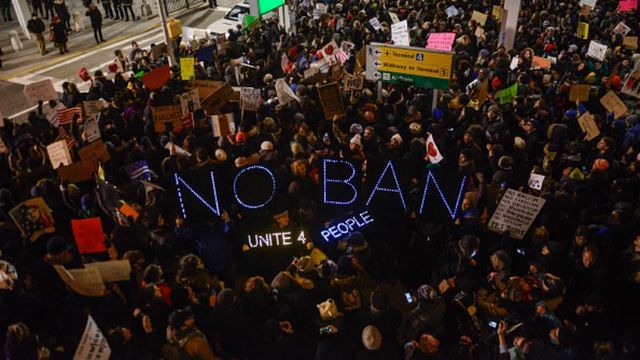 В найбільших аеропортах США почалися акції протесту проти указу антимігрантського указу Дональда Трампа, яким він заборонив на 4 місяці приймати усіх біженців. Ще від ранку суботи в найбільших аеропортах країни, зокрема в аеропортах Нью-Йорка, Сан-Франциско, Чикаго, Сіетла розпочались акції на підтримку мігрантів. Люди приїжджають до аеропортів, вимагаючи визнати дії президента антиконституційними. В акціях по всій країні беруть участь сотні людей. За оцінками The New York Times, в перший день в аеропорту Кеннеді та в інших міжнародних аеропортах країни було затримано до 200 осіб. Всі фото Getty images