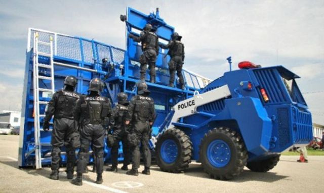 Машина під назвою "Bozena Riot" створена, щоб розганяти учасників вуличних заворушень. Броньовик оснащений 2 водометами, а також бійниці для стрільби із травматичної зброї. А головною родзинкою машини став гігантський тритонний щит, який може розсуватися, і, таким чином, повністю блокувати вулицю.2 3