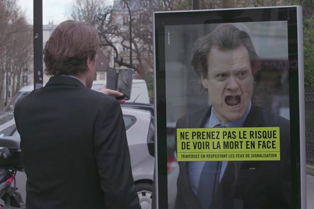 Агентство Serviceplan і французьке держвідомство з питань безпеки дорожнього руху провели експеримент, за допомогою якого вирішили привернути увагу до проблеми порушення ПДР пішоходами. Біля одного з переходів встановили лайтбокс, оснащений датчиком руху, динаміком і камерою: коли хтось переходив дорогу на червоне світло, з рекламного щита лунав звук різко гальмуючого авто, пише PetaPixel. У такі моменти особи наляканих пішоходів фотографували, і знімки миттєво потрапляли на лайтбокс з написом "Не варто заглядати в очі смерті. Погляньте на світлофор і переходите дорогу безпечно". Кілька подібних фотографій, зроблених в ході акції, зараз розміщені на білбордах і лайтбоксах по всій Франції. 2 3